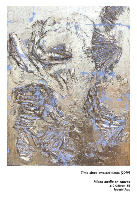 今作は時間を意識した”Leaving Gold ” 光(金箔)と時間、その関係性に注目した。金箔は時間と共に変色していく。金の輝きが劣化してくと同時に時間が現れてくる。