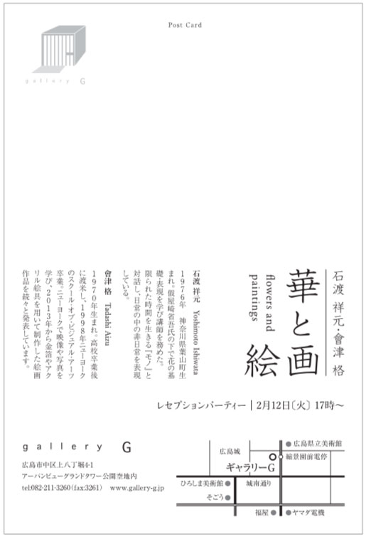 | In 2019, | the joint exhibition of flowers and paintings at gallery G, Hiroshima |