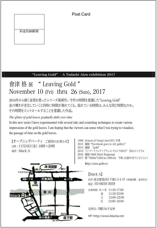 | 2017年 | 個展 “Leaving Gold” at black A |